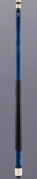 Lucky L7 cue has a blue stained Maple forearm and butt sleeve. Completing the cue is a black and blue Irish linen wrap and overlay index ring work.