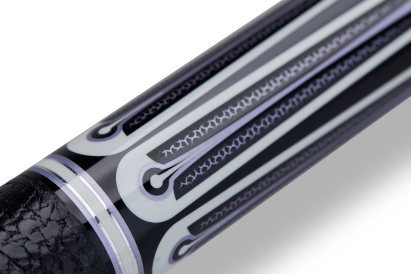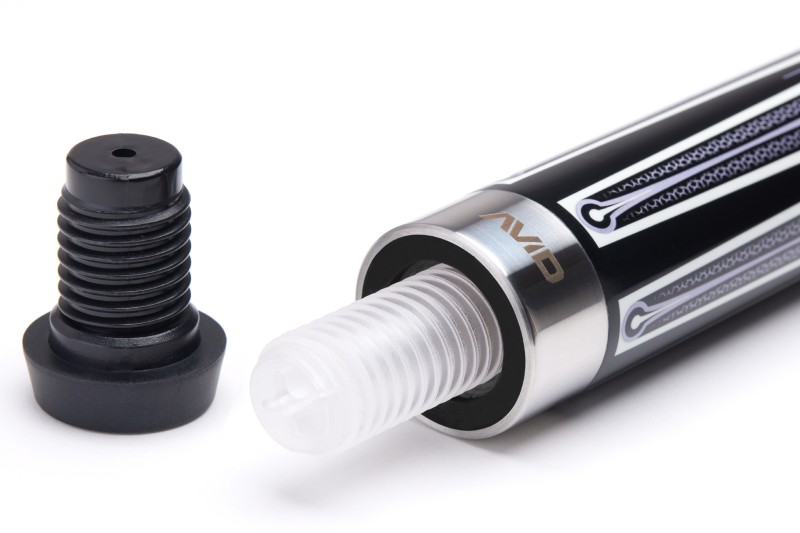 Chaque queue est fabriquée en érable dur de qualité supérieure, séché au four et scellé sous vide. Elle arbore des motifs originaux et complexes et est livrée avec, au choix du joueur, une flèche AVID de 11,75 / 12,25 / 12,75 mm en érable renforcé de fibres de verre à faible déviation.