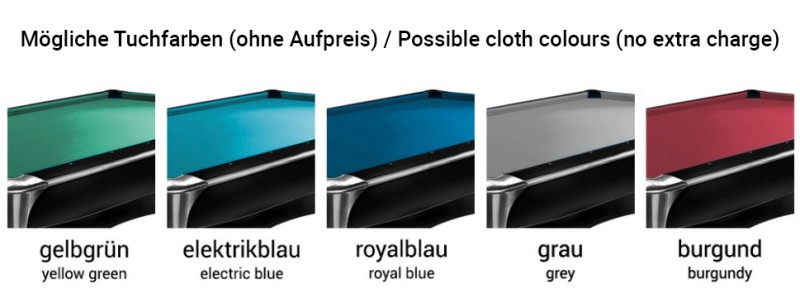 Der Dynamic Triumph Billardtisch garantiert lebenslanges Spielvergnügen. Das Material der Banden ist kratz- und stoßfest. Attraktive Chromelemente bieten zusätzlichen Schutz und verleihen dem Tisch ein exklusives Aussehen.