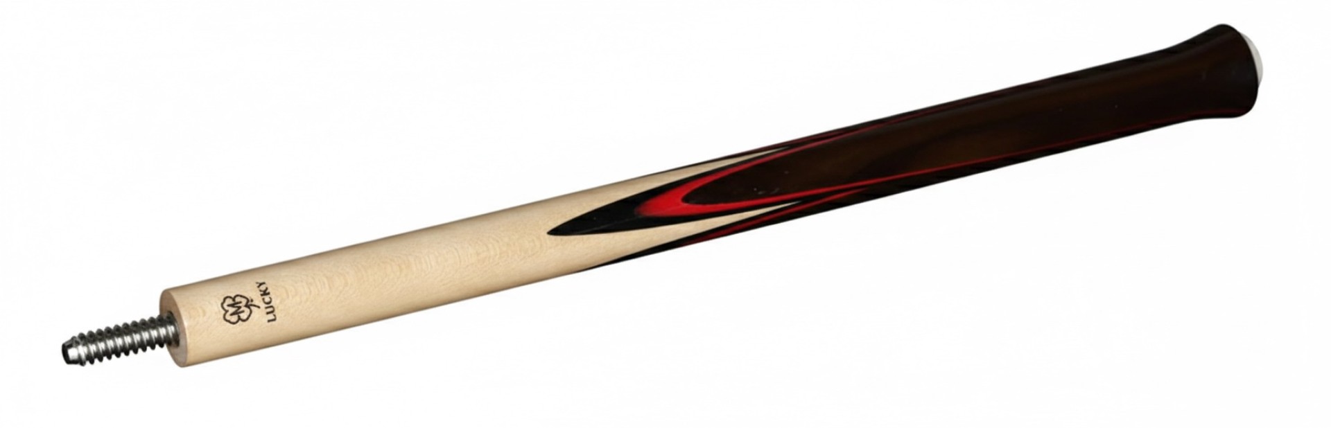 Lucky by McDermott Red Jump-Queue Dieser 104 cm lange Jump-Queue ist aus hartem Ahorn gefertigt und hat Spitzen aus Palisander, rotem und schwarzem Butterfly-Furnier. Er verfügt über einen 14-mm-Oberteil mit Phenolharz-Spitze. Das Gewicht beträgt ca. 241 g. Marke: Lucky Queue-Typ: Jump-Queue Oberteil: Ahorn Gewinde: 3/8 x 10 Griffband: Ohne Griffband