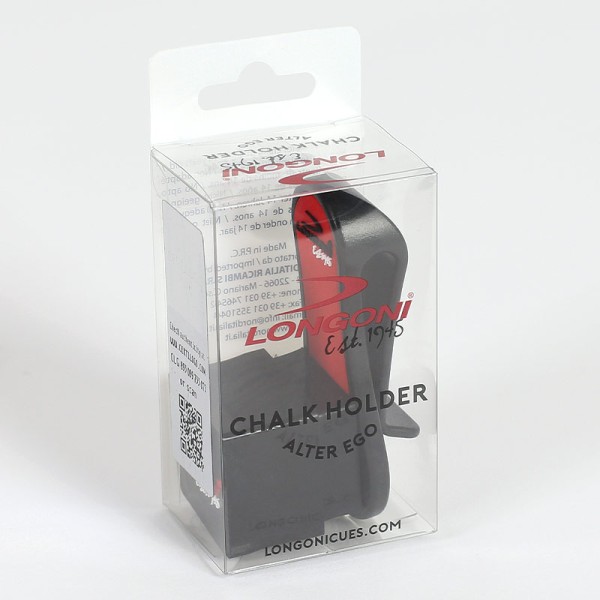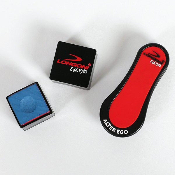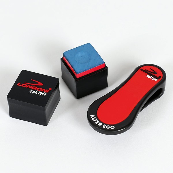 Born from an innovative design, Alter Ego has been engineered to ensure comfort, lightness, and maximum practicality. The dual supermagnet fastening system guarantees a secure grip, so your chalk stays firmly in place. The special silicone cover, customized with the Longoni logo, prevents chalk dust from soiling the inside of your cue case when stored.