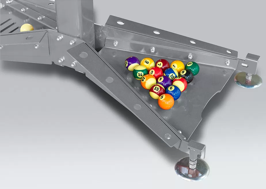 Now literally anyone can have the pleasure of the game since the Decotech has been specially designed for a person who uses a wheelchair as well. Nevertheless, its universal design allows to enrich any modern interior or quite contrary to bring contemporary feeling into more classical space. Table top holder, specially designed to match the table, allows you to flawlessly enjoy the game any time you want. Forget about the old-fashioned cue and ball holdings since now you can store your cues under the table top and put the balls under the table.