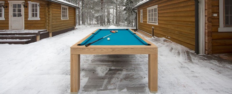 This billiard table is made from solid oak and covered with special UV resistant oil decking,so Vision Outdoor is the same resistant wheather category like outdoor wood furniture. Depending on certain wheather conditions, this table, like outdoor wood furniture, must be recovered with special UV resistant oil decking every 3-4 years. Possible finishing colours: natural oak, white and grey (see picture).