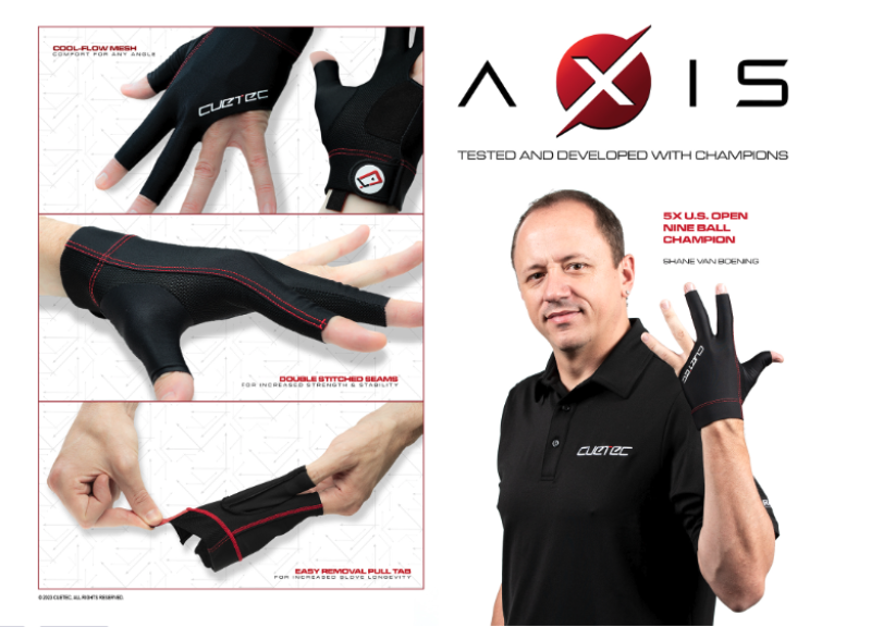 Your bridge is part of your game’s foundation. On-table success is built on a solid foundation. AXIS High-Performance Billiards Gloves feature a durable, ultra-low-friction surface paired with cool-flow breathable mesh, reinforced with double stitching to provide players with a smoother and more consistent stroke. The result is a better foundation to give your game the X-factor.