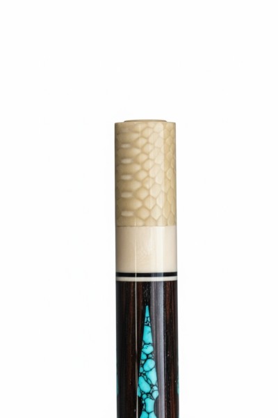 The inlays are made of synthetic resin woods such as Turquoise, Olive, Cocobolo, and Ebony for a classic and balanced design.