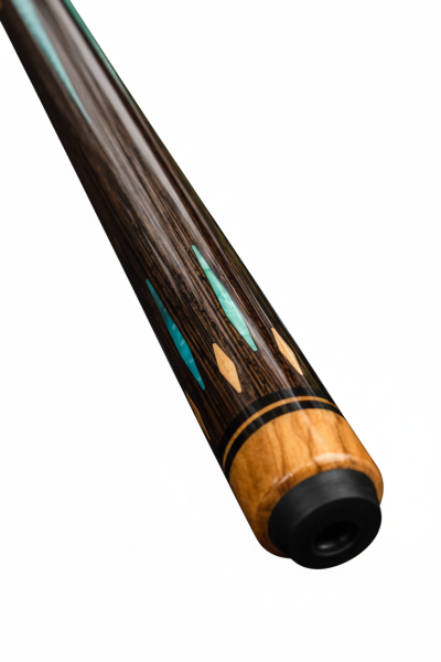 This is a single-body wenge wood structure designed to achieve a very high-quality product with superb impact transmission and inlaid with olive wood and synthetic dragon skin resin. The mallet is finished with cyanoacrylate and CNC ground, as is standard with all our cues.
