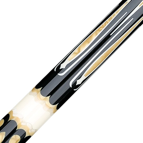 This cue features a refined Nox body with elegant teardrop inlays and Juma rings, creating a striking contrast between the dark wood and luminous details. Inspired by Escher’s artistic vision, it embodies the idea of metamorphosis, where forms evolve and flow into one another. The teardrop motifs seem to transform along the cue, symbolizing continuous movement and precision.