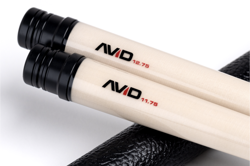 Each cue is made of A grade kiln-dried, vacuum-sealed hard maple and shines with original intricate designs and arrives equipped with the AVID 12.75mm glass bonded maple low-deflection shafts.
